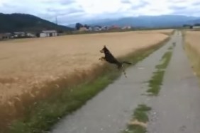 Video: A black-and-white dog bounces through a wheat field like a kangaroo — all to the beat of Louis Prima's…